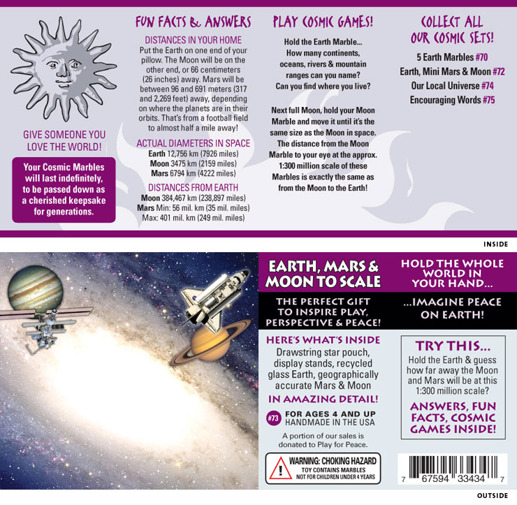 Earth, Mars & Moon Marbles to Scale